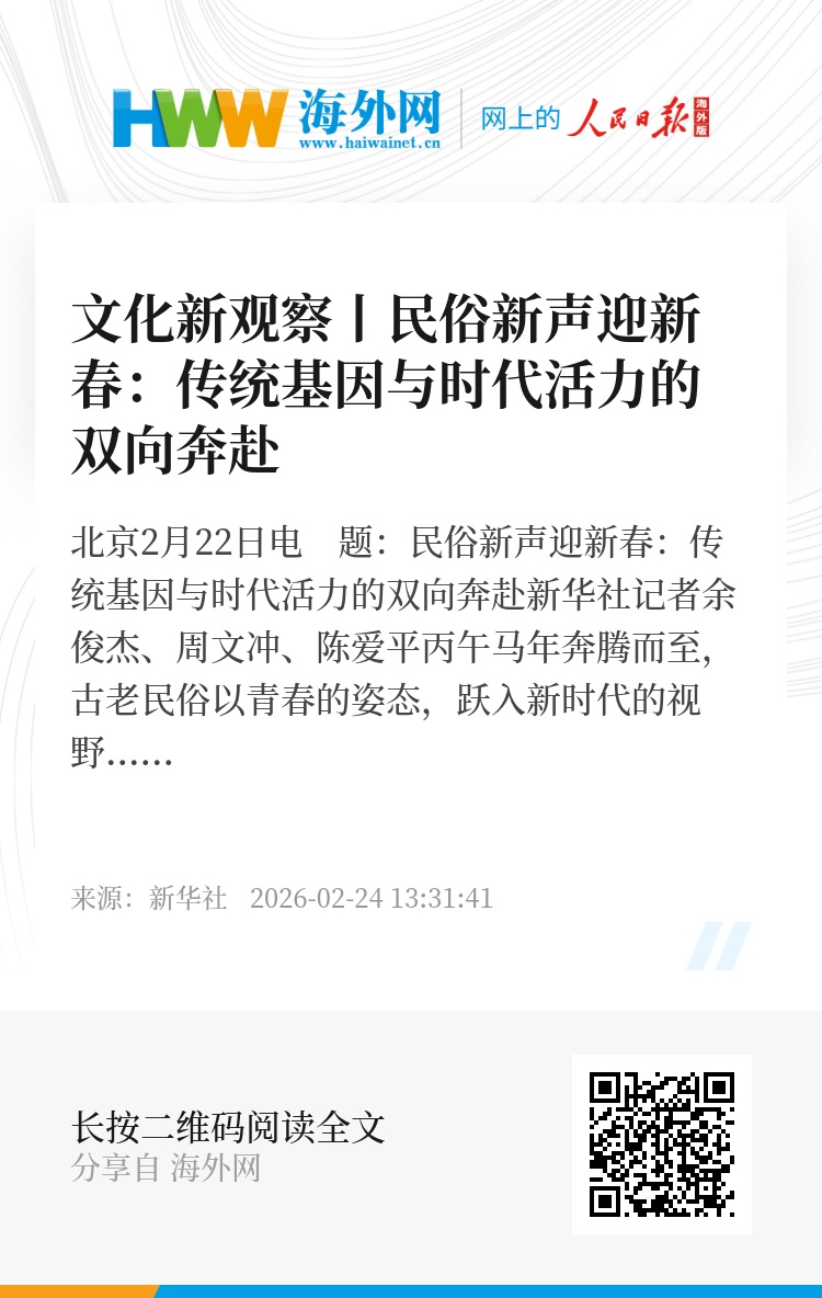 科技让传统文化可触可感,让年味可亲可近。这个新春,古老的民俗以崭新姿态融入生活,住进一代代人的心里。文化的根,就这样在创新的土壤里,扎得更深、生得更旺。