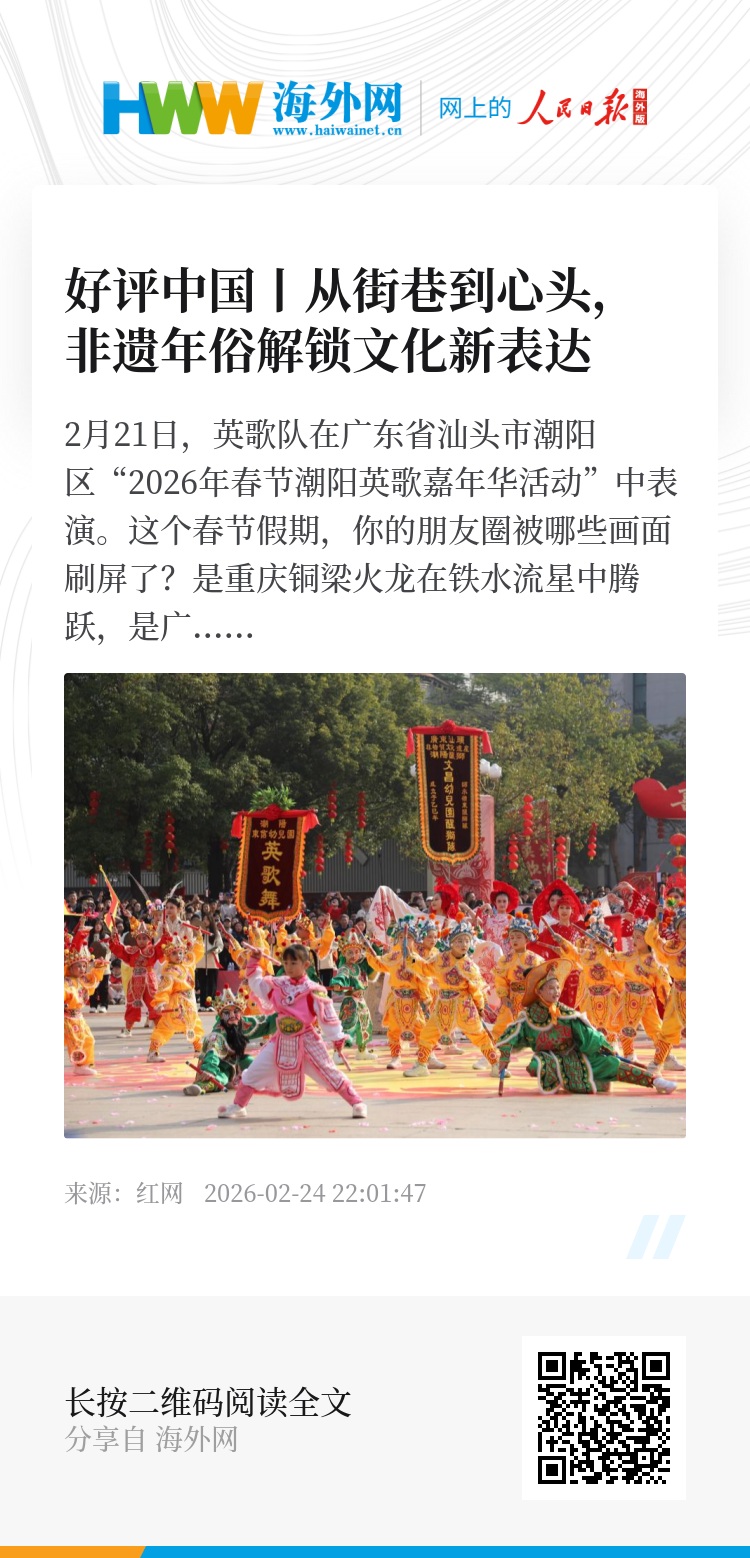 过去人们常说“年味变淡了”,但今年春节,“追着非遗去旅行”的热潮,打破了这份怅惘。从北国的徐水狮舞到南疆的潮阳英歌,从东部的秦淮灯会到西部的铜梁龙舞,一张无形的“追年地图”,正将散落在各地的非遗年俗串联起来,让传统年味在步履流转中重焕生机,也让我们重新思考年味的本质,并非形式的复刻,而是文化根脉的延续。