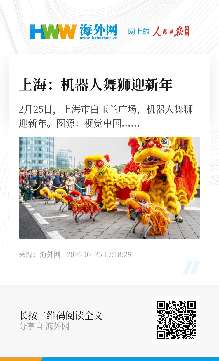 32933554,.上海:机器人舞狮迎新年,.2026-02-25 17:18:29,.204589,.黄之安、侯兴川