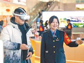 “暖行驿站”候车室里,全新的VR云服务体验区格外醒目,成为返程旅客体验的科技角。“戴上VR眼镜,不仅能了解车站布局、乘车流程和出行注意事项,还能虚拟游览鄂尔多斯周边特色景点,让候车过程也很有趣!”旅客王丽体验后说。