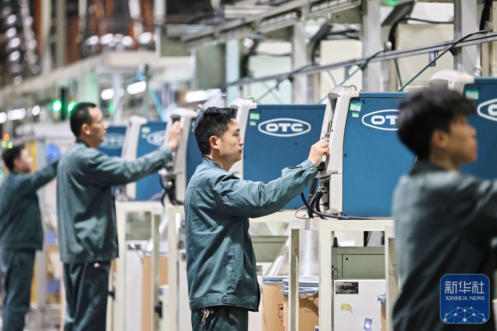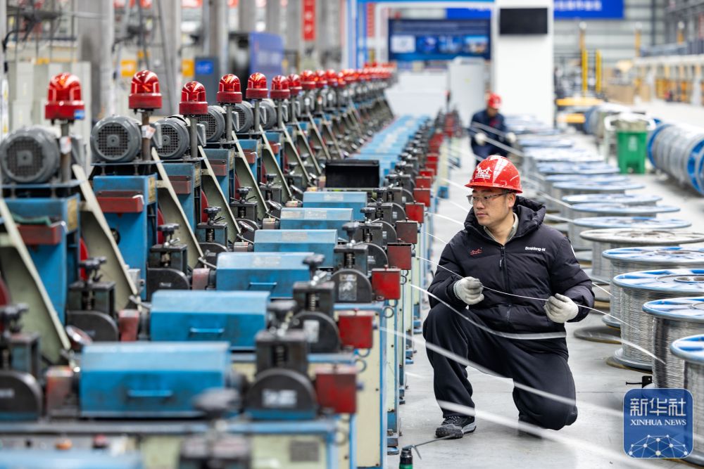 ↑ 2月24日,工人在位于江苏省泰州市海陵区的江苏金桥焊材科技有限公司生产线上忙碌。新华社发(汤德宏摄)