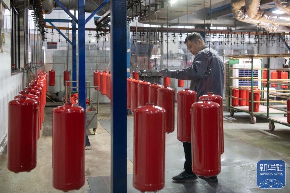 ↑ 2月24日,在位于浙江省余姚市黄家埠镇的宁波凯旋消防器材有限公司生产车间,员工在检验消防器材零件。新华社发(张辉摄)