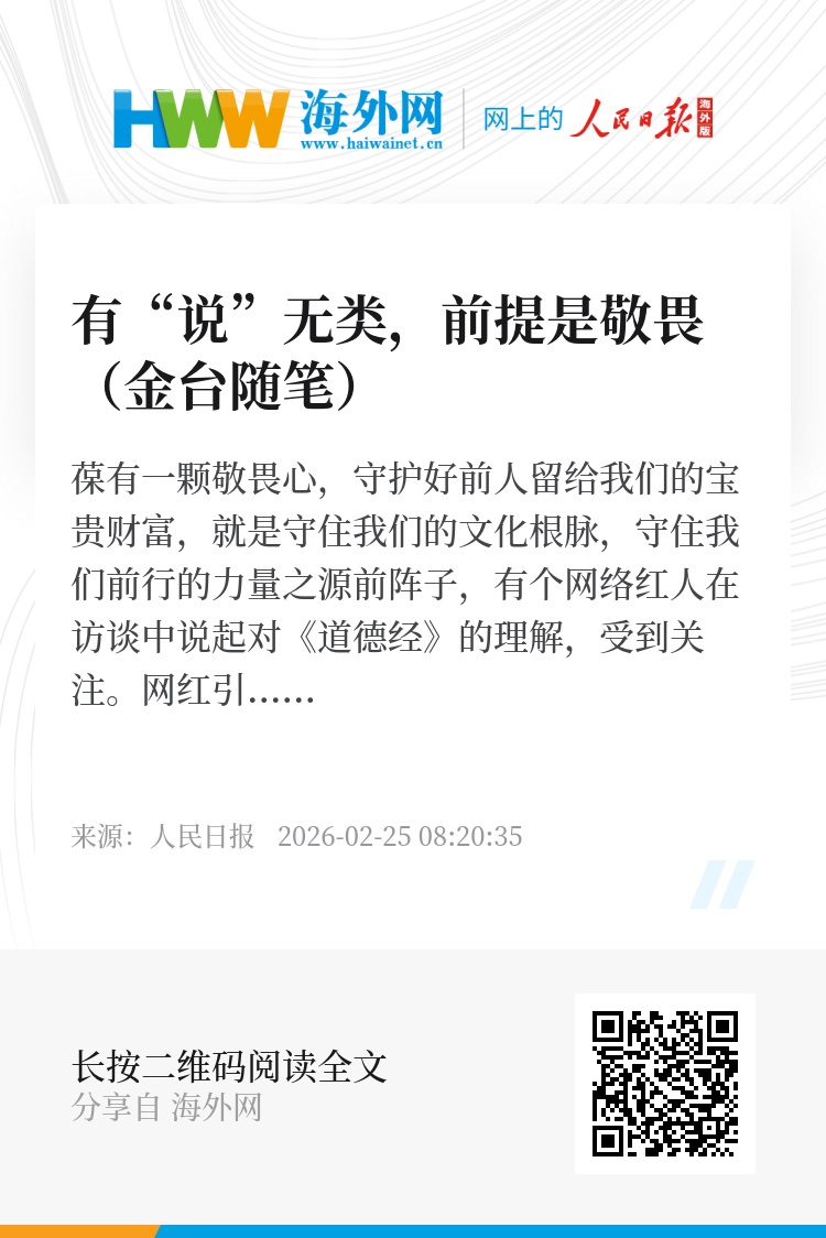 文化遗产、文化经典不仅属于我们这一代人,也属于子孙万代。葆有一颗敬畏心,守护好前人留给我们的宝贵财富,就是守住我们的文化根脉,守住我们前行的力量之源。(邹 翔)