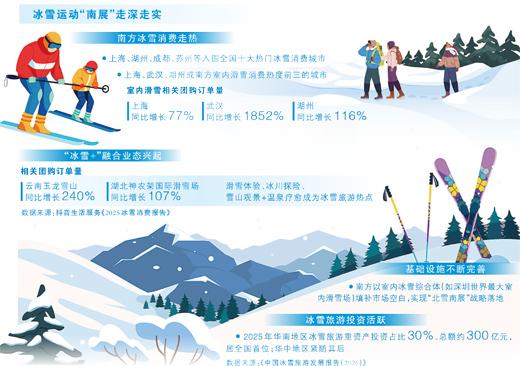 “需求牵引供给、供给适配需求,是冰雪经济‘下江南’的关键支撑。”中国旅游研究院研究员韩元军说,面对多元化、品质化的南方冰雪消费需求,经营主体因地制宜、精准发力,从场景建设到服务优化,从产品创新到技术人才赋能,打破气候地域瓶颈,推动冰雪经济从“短期爆红”向“长期长红”转型。