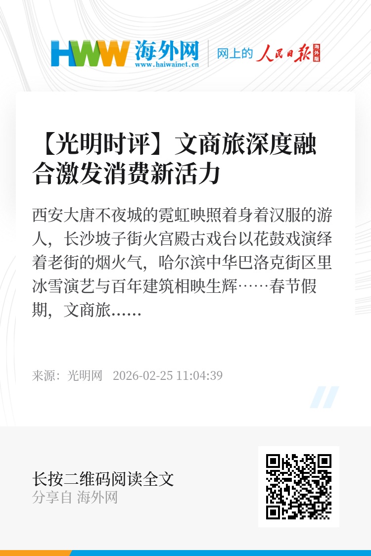 当前,我国消费市场正经历从物质满足向精神愉悦、从单点购买向全程体验的深刻转型。2025年中央经济工作会议明确提出“深入实施提振消费专项行动”。在今年地方两会上,“提振消费”与“文商旅融合”也成为讨论的高频词。文商旅融合正成为以高质量供给撬动内需潜力、推动消费提质扩容的重要路径。