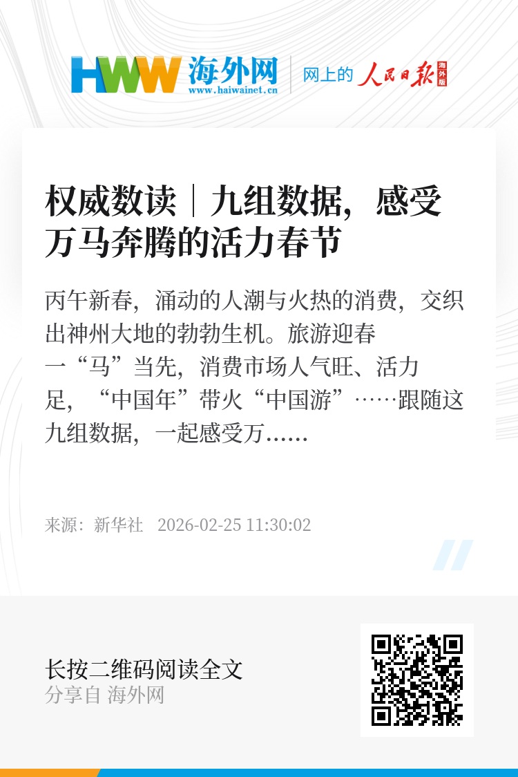 丙午新春,涌动的人潮与火热的消费,交织出神州大地的勃勃生机。旅游迎春一“马”当先,消费市场人气旺、活力足,“中国年”带火“中国游”……跟随这九组数据,一起感受万象更新、万马奔腾的活力春节。