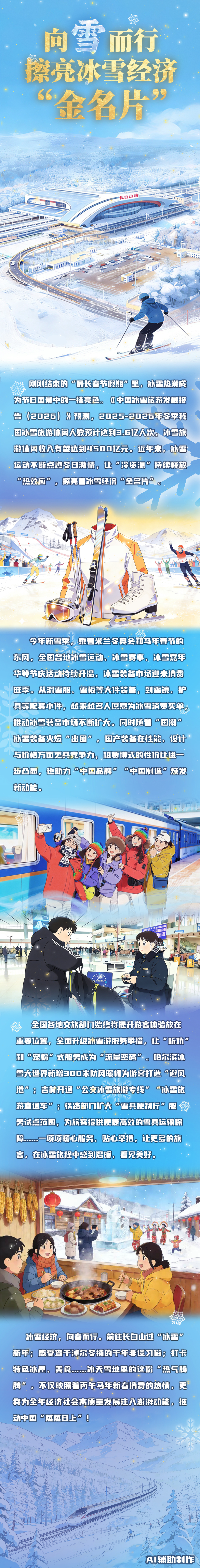 在刚刚过去的“最长春节假期”里,沈白高铁加密开行,试点推出“雪具便利行”服务,助力游客“轻装出行,尽情滑雪”;身着各色雪服的体验者走进深圳华发前海冰雪世界,感受扑面而来的冷气,享受冰雪运动的乐趣……从北国雪原到南方室内雪场,冰雪热潮在神州大地持续奔涌,映照出消费市场的强劲脉动、经济发展的盎然生机。