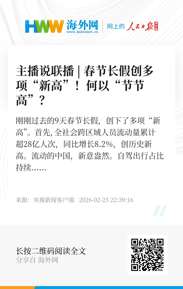 首先,全社会跨区域人员流动量累计超28亿人次,同比增长8.2%,创历史新高。流动的中国,新意盎然。自驾出行占比持续提升,就像一位游客说的,“刷到好玩的地方,方向盘一打就过去了”。不少高铁新线也首次投入春运,让更多旅客能够“说走就走”。 此外,“反向过年”成为新趋势,父母去子女城市过年,带动了一线城市的“团圆经济”。旅途中的候车厅和服务区也摇身一变,成了可以休闲和购物的消费新空间。