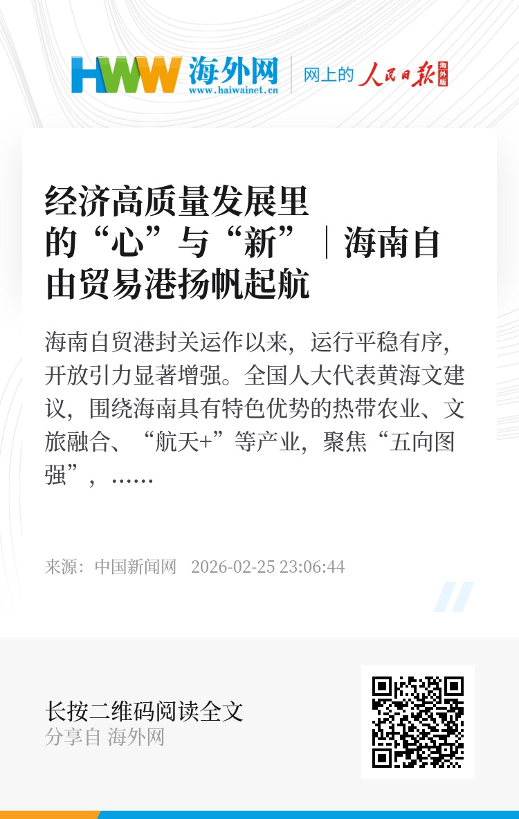 海南自贸港封关运作以来,运行平稳有序,开放引力显著增强。全国人大代表黄海文建议,围绕海南具有特色优势的热带农业、文旅融合、“航天+”等产业,聚焦“五向图强”,加快推动更多政策红利惠及广大市场主体。海南发改委主任綦树利表示,围绕打造引领我国新时代对外开放重要门户的战略目标,海南蹄疾步稳推进自贸港建设。