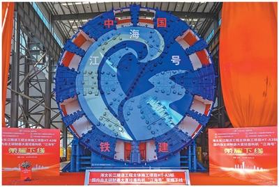 国内自主研制、最大开挖直径达16.64米的超大直径盾构机“江海号”。