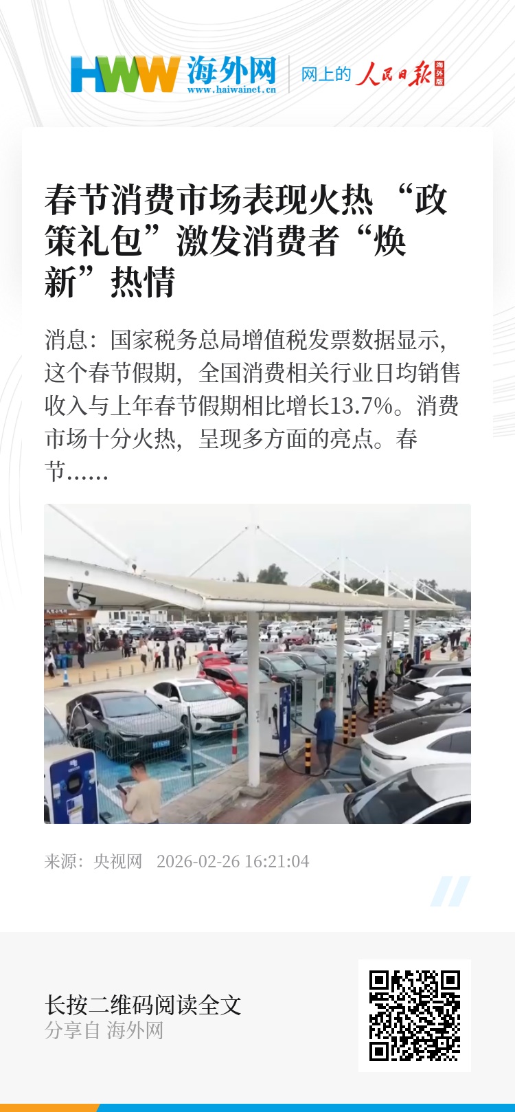 央视网消息:国家税务总局增值税发票数据显示,这个春节假期,全国消费相关行业日均销售收入与上年春节假期相比增长13.7%。消费市场十分火热,呈现多方面的亮点。