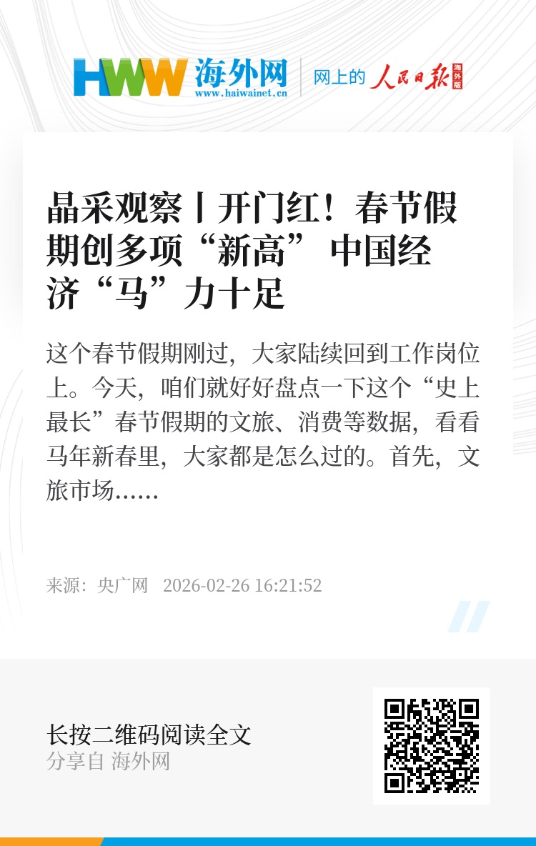 此外,今年春节国内游的订单又创新高,入境游的机票也翻了几倍。西安、成都等国内热门地区,多了不少穿汉服逛庙会的外国面孔,大家一起凑个“热闹”。最新数据显示,经文化和旅游部数据中心测算,春节假日9天,全国国内出游5.96亿人次,较2025年春节假日8天增加0.95亿人次,国内出游总花费8034.83亿元。春节吸引160多个国家和地区的游客,足迹覆盖国内300多个城市,较去年假期日均增长28.5%。