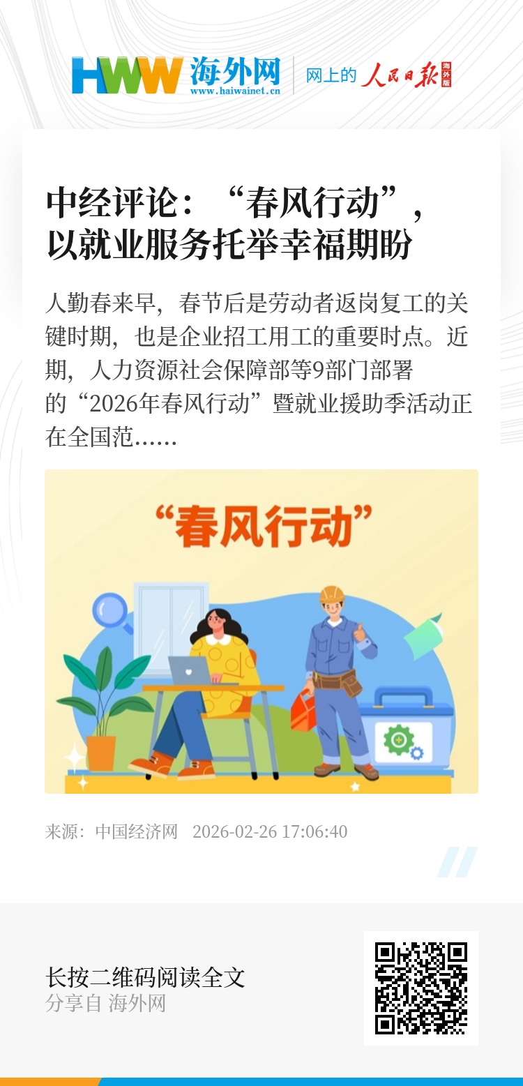 在这个春天,期待“春风行动”能以就业服务为支点,托举千家万户的幸福期盼,提振经济发展的坚定信心。当每一位劳动者都能在就业服务中切实感受城市温度,更好扎根城市发展,高质量发展的愿景将触手可及。(中国经济网评论员 臧梦雅)