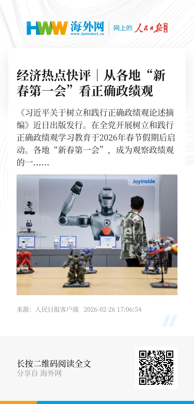 《习近平关于树立和践行正确政绩观论述摘编》近日出版发行。在全党开展树立和践行正确政绩观学习教育于2026年春节假期后启动。各地“新春第一会”,成为观察政绩观的一个窗口。