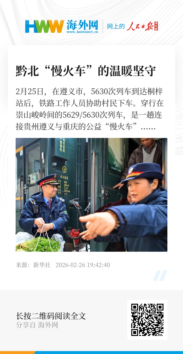 穿行在崇山峻岭间的5629/5630次列车,是一趟连接贵州遵义与重庆的公益“慢火车”,开行三十三年来,它以低廉的票价和“站站停”的坚守,不仅方便了沿线群众的日常出行与农货运输,还在车厢里设置了惠农专区,方便菜农安置货物及售卖。这趟穿行于渝黔山区的列车成为沿途老乡们的“流动集市”,也串起了一条山区群众的出行路与致富路。