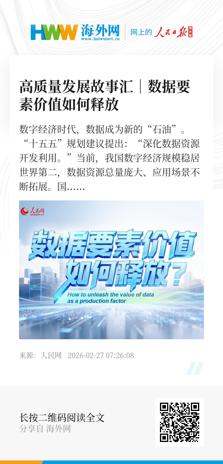 当数据真正融入经济肌体,成为像水、电一样的基础设施,它必将浸润千行百业、链接全域创新,澎湃为高质量发展的强劲动能。(人民网记者赵竹青)