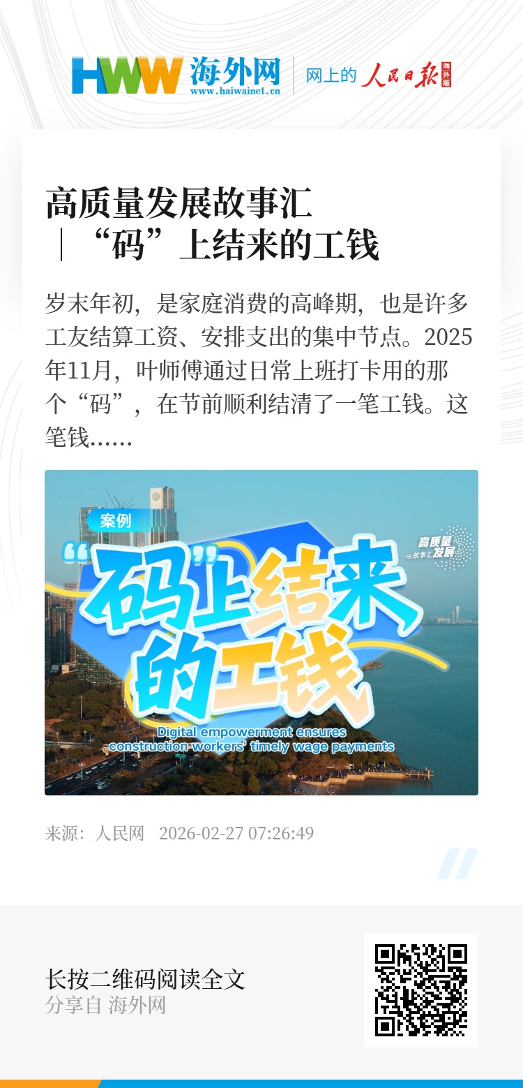 上线3年来,平台在数据驱动下,已实现劳务结算超10亿元,助力施工企业降本增效超15%。这些数字,真实记录了每位建设者走过的路、流过的汗,也守护着背后一个个家庭的幸福生活。(人民网记者王仁宏整理)