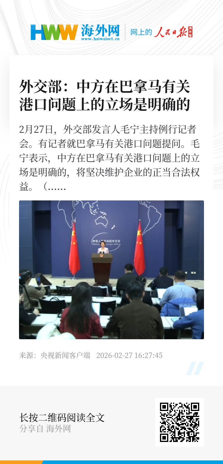 2月27日,外交部发言人毛宁主持例行记者会。有记者就巴拿马有关港口问题提问。