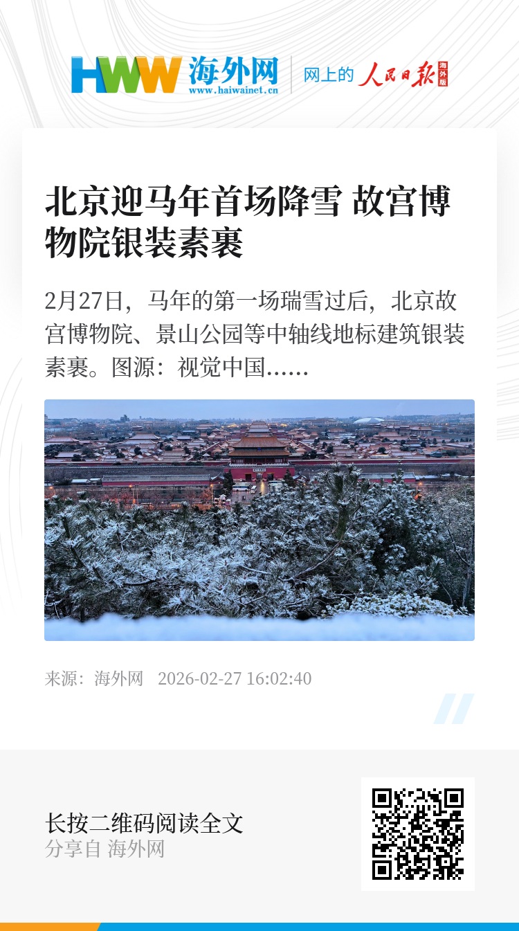 32934032,.北京迎马年首场降雪 故宫博物院银装素裹,.2026-02-27 16:02:40,.204428,.张青津、侯兴川