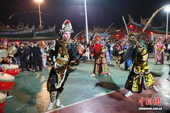 2月25日晚,福建南安英都镇举办拔拔灯民俗活动。图为民俗表演。黄奕群 摄