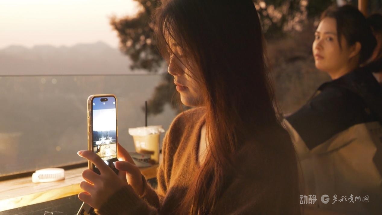 站在悬崖咖啡厅,脚下是150米垂直落差的喀斯特峡谷,建筑与青山融为一体,一杯热咖啡,满眼好风光。即便气温偏低,这里依旧人气满满。