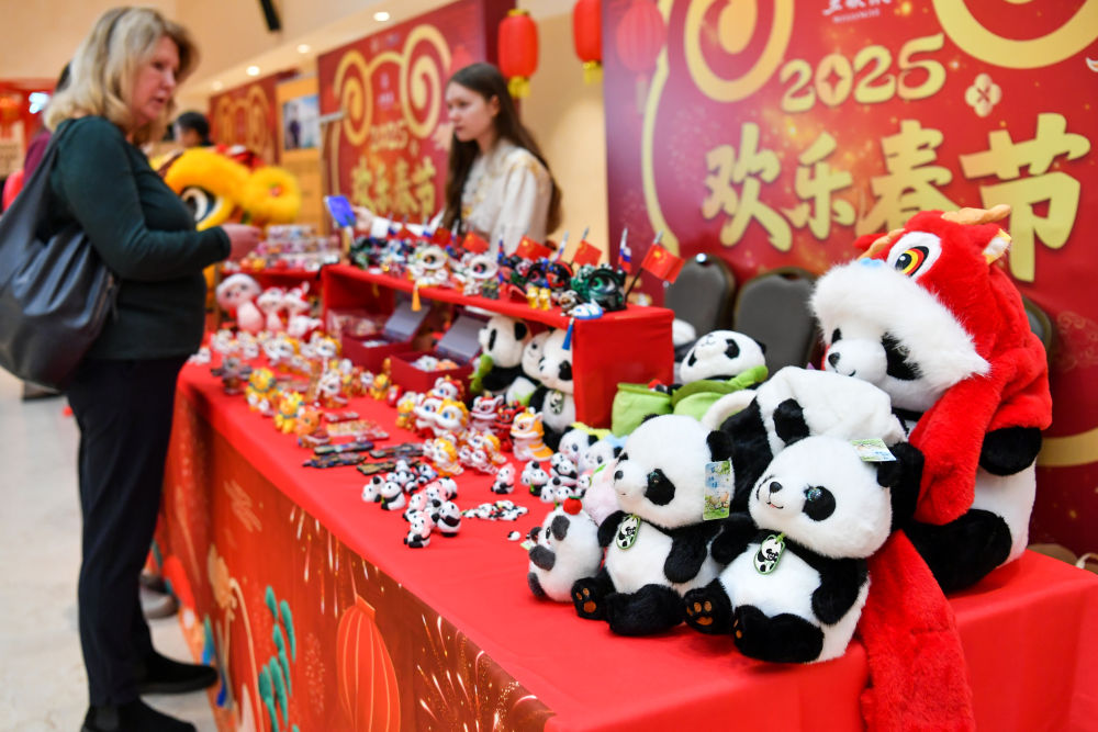 2025年1月28日在俄罗斯莫斯科举行的新春庙会活动上拍摄的文创产品。
