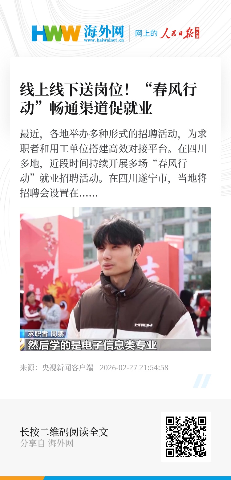 最近,各地举办多种形式的招聘活动,为求职者和用工单位搭建高效对接平台。在四川多地,近段时间持续开展多场“春风行动”就业招聘活动。