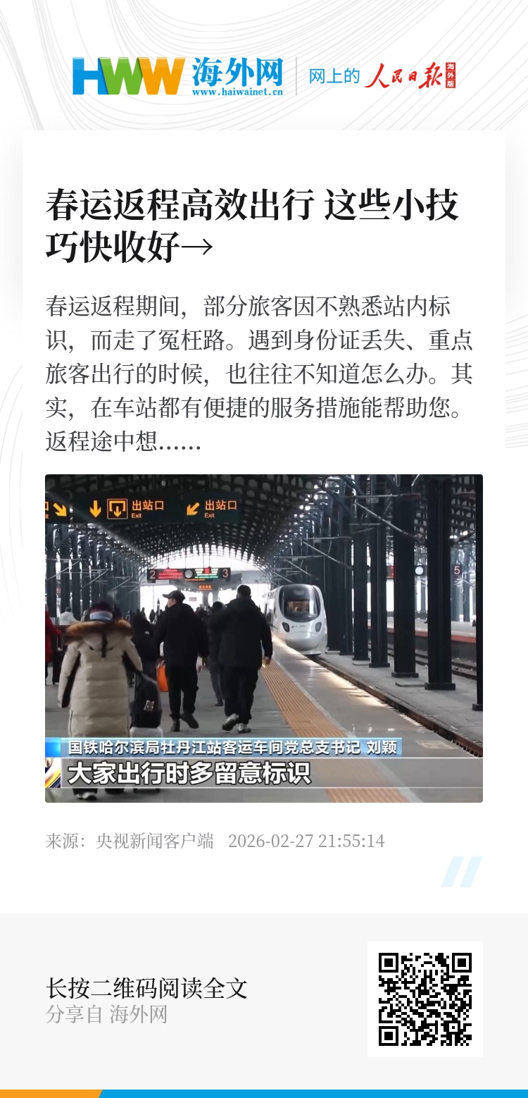 国铁哈尔滨局牡丹江站客运车间党总支书记 刘颖:一般车站内都设有清晰的指示牌和图标,涵盖候车区、检票口、人工通道、中转换乘通道等关键区域,大家出行时多留意标识,就能快速找到目标方向。