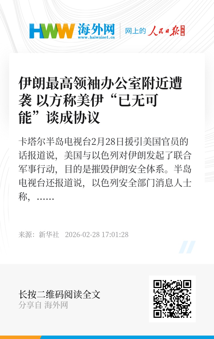 卡塔尔半岛电视台2月28日援引美国官员的话报道说,美国与以色列对伊朗发起了联合军事行动,目的是摧毁伊朗安全体系。