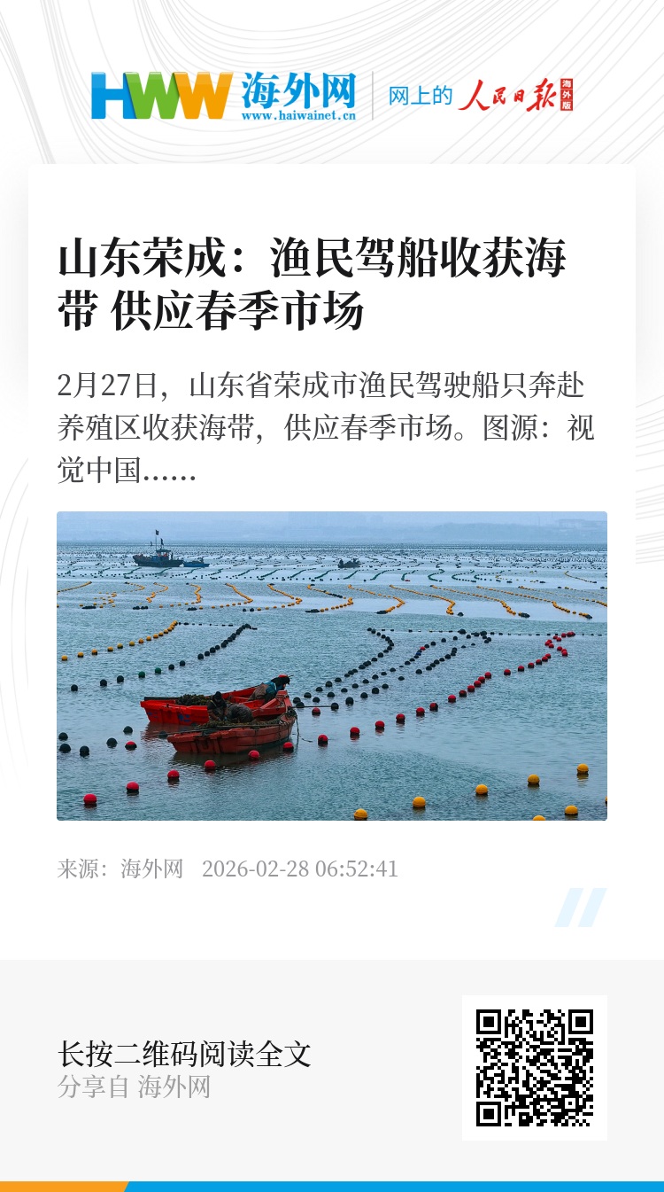 32934164,.山东荣成:渔民驾船收获海带 供应春季市场,.2026-02-28 06:52:41,.204441,.张荣耀、卢思宇