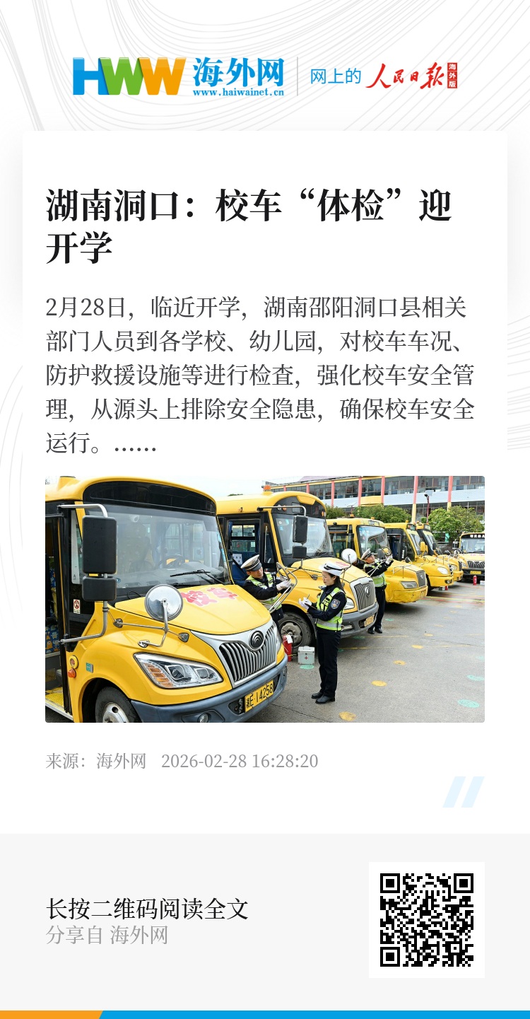 2月28日,临近开学,湖南邵阳洞口县相关部门人员到各学校、幼儿园,对校车车况、防护救援设施等进行检査,强化校车安全管理,从源头上排除安全隐患,确保校车安全运行。图源:视觉中国