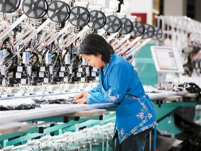 近日,贵州省黔东南苗族侗族自治州施秉县各中小企业开工生产,助力员工稳岗就业增收。图为员工在施秉县一家数字化苗绣企业生产车间赶制订单产品。邰胜智摄(人民视觉)