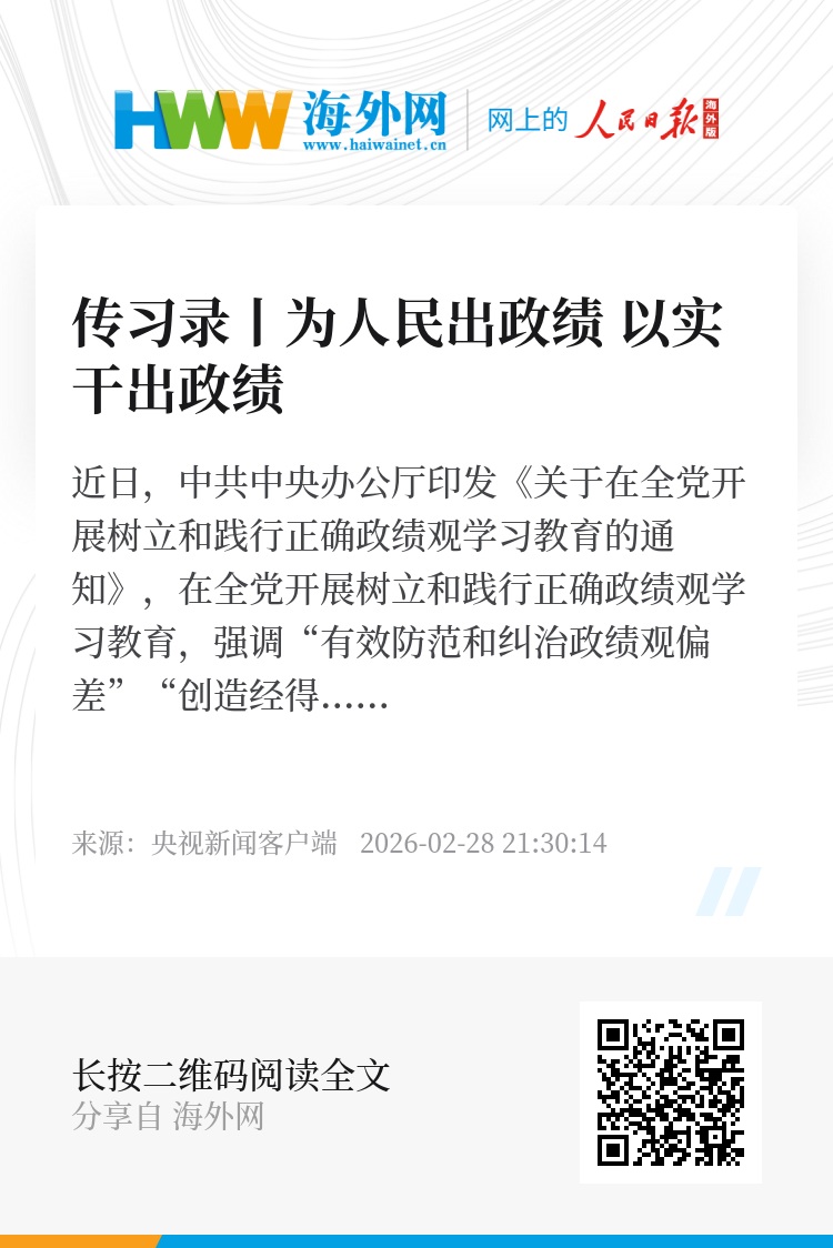 近日,中共中央办公厅印发《关于在全党开展树立和践行正确政绩观学习教育的通知》,在全党开展树立和践行正确政绩观学习教育,强调“有效防范和纠治政绩观偏差”“创造经得起实践、人民、历史检验的实绩”。