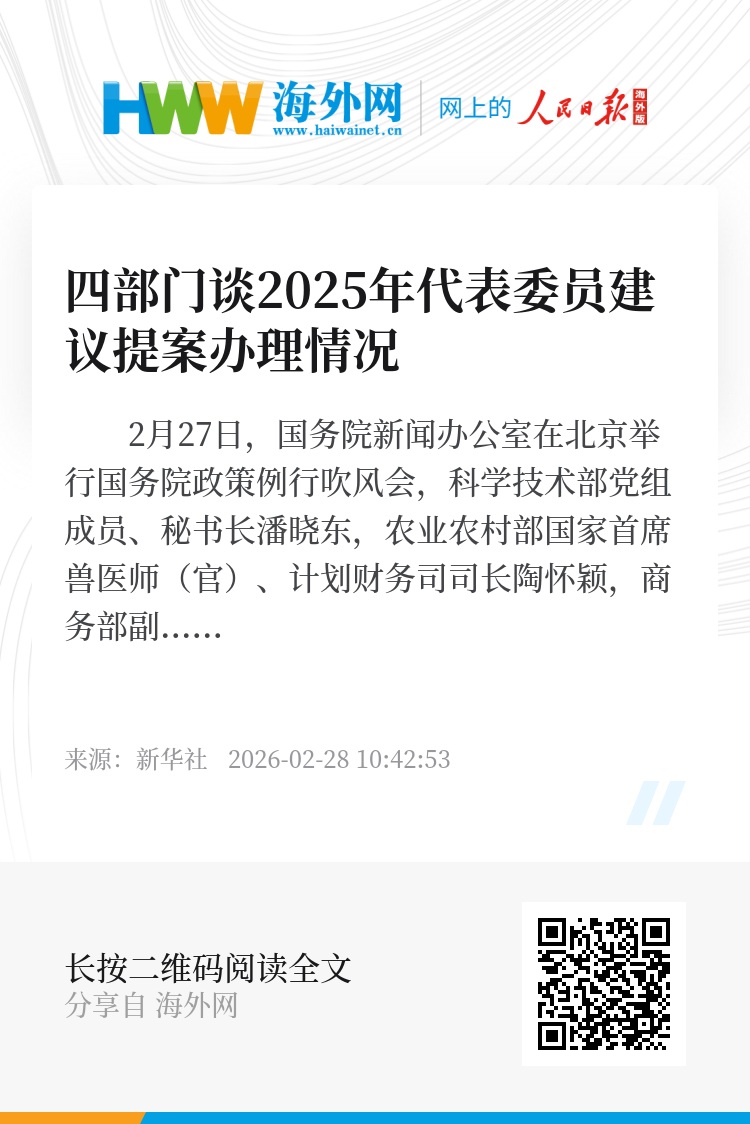 新华社北京2月27日电 题:以提升办理质效激发高质量发展活力——四部门谈2025年代表委员建议提案办理情况
