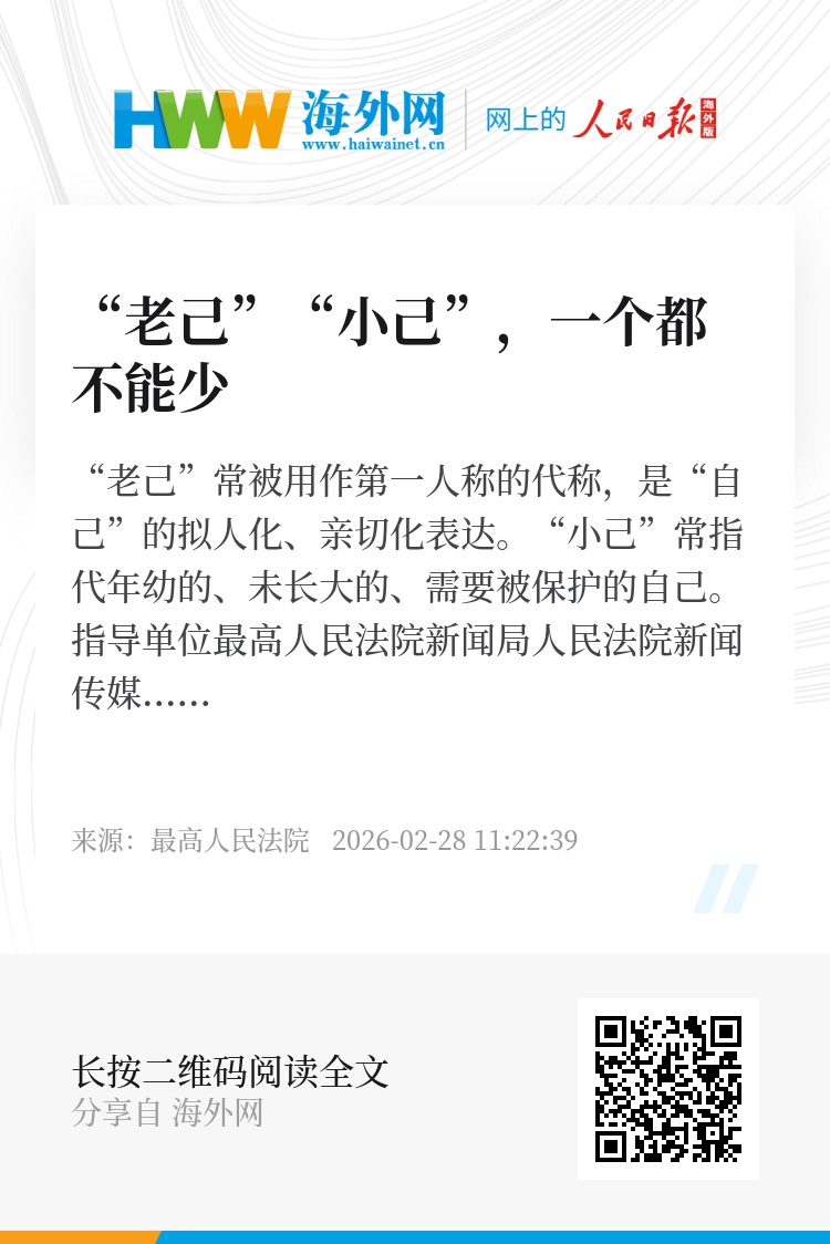 “老己”常被用作第一人称的代称,是“自己”的拟人化、亲切化表达。