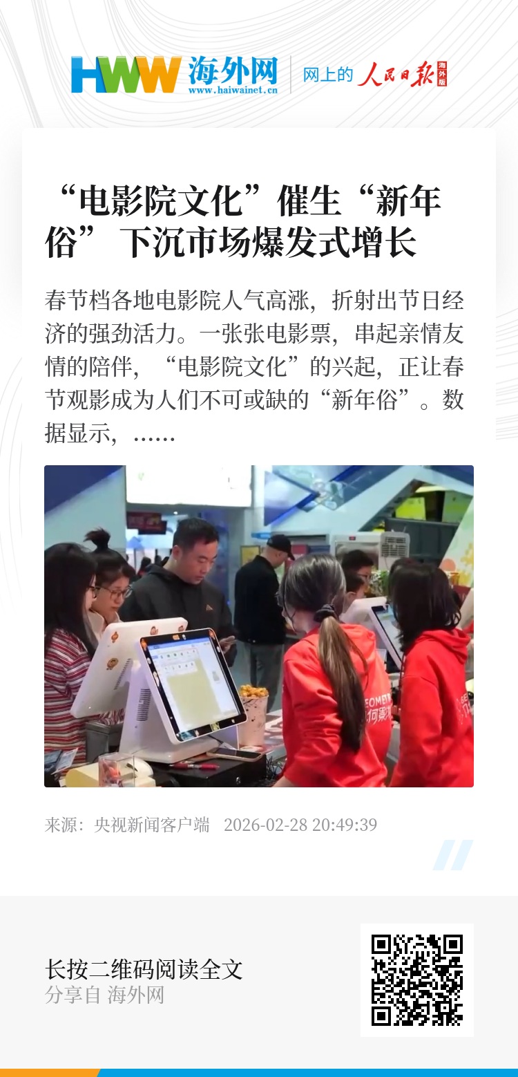春节档各地电影院人气高涨,折射出节日经济的强劲活力。一张张电影票,串起亲情友情的陪伴,“电影院文化”的兴起,正让春节观影成为人们不可或缺的“新年俗”。