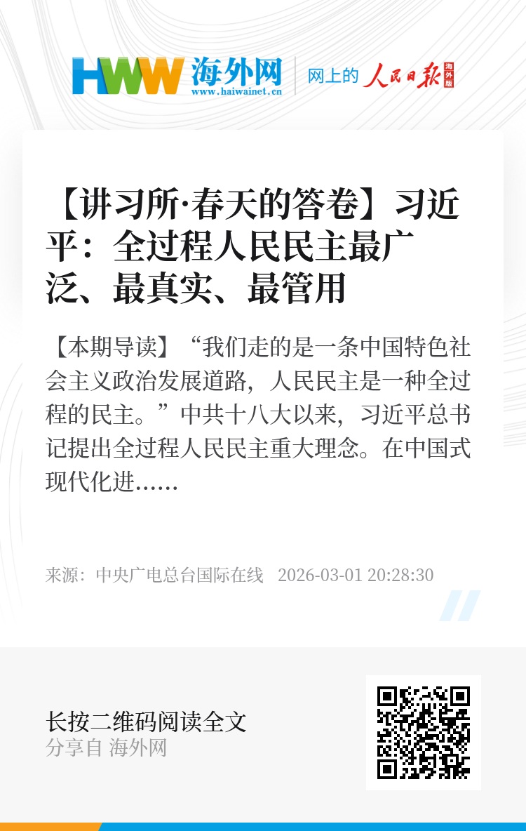 在国际人士眼中,中国的民主渠道致力于持续倾听“人民想要什么”,各地不断创新征集民意表达的渠道,畅通了基层民主的“最后一公里”,为当今世界的治理探索和民主发展提供了宝贵启示。