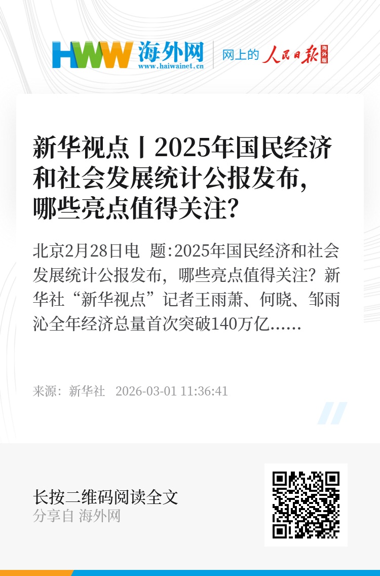新华社北京2月28日电 题:2025年国民经济和社会发展统计公报发布,哪些亮点值得关注?