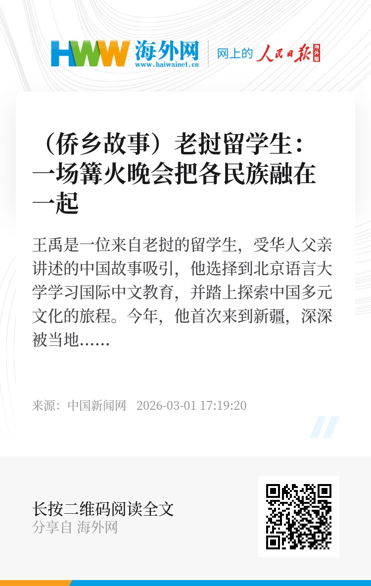 夜晚的篝火晚会上,一位维吾尔族姑娘热情地教他跳舞,众人不分国籍、民族、年龄,在火把下载歌载舞,让他切身感受到民族融合的温暖力量。他还被新疆方言与普通话交融的“馕言文”现象吸引,进一步激发了他学习中国方言的兴趣。这次经历坚定了王禹的梦想——成为连接中国与老挝的文化、教育与经济交流的桥梁,为两国友谊贡献自己的力量。(贾志鹏 新疆乌鲁木齐报道)