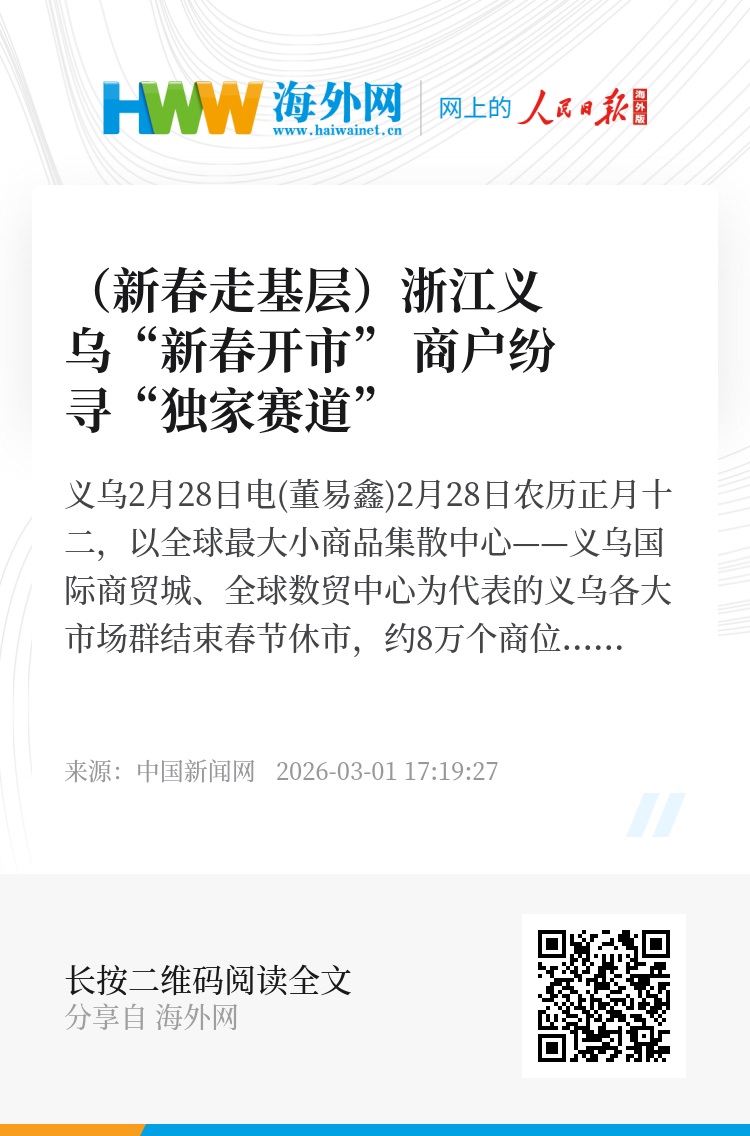 中新网义乌2月28日电(董易鑫)2月28日农历正月十二,以全球最大小商品集散中心——义乌国际商贸城、全球数贸中心为代表的义乌各大市场群结束春节休市,约8万个商位的经营主体正式开门,以创新产品和“独家赛道”迎接海内外客商。