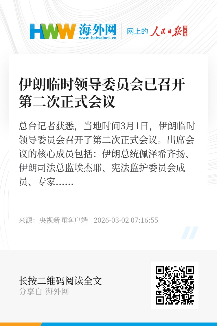 总台记者获悉,当地时间3月1日,伊朗临时领导委员会召开了第二次正式会议。