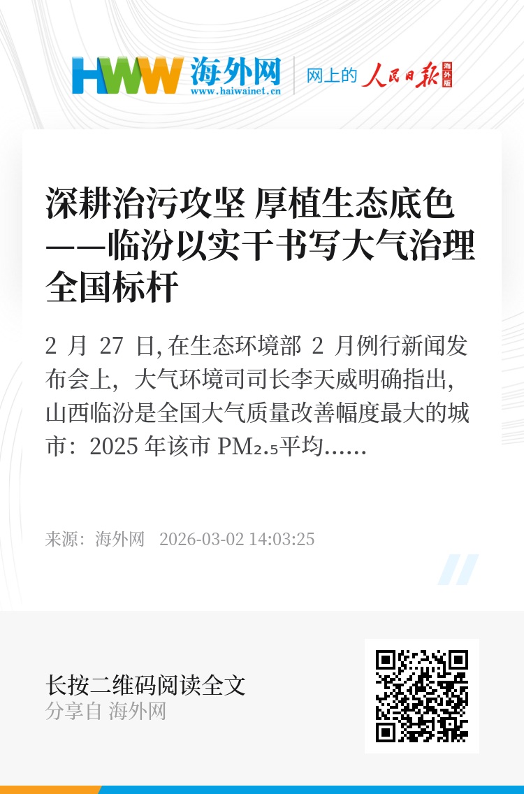 2 月 27 日,在生态环境部 2 月例行新闻发布会上,大气环境司司长李天威明确指出,山西临汾是全国大气质量改善幅度最大的城市:2025 年该市 PM₂.₅平均浓度降至 35.1 微克 / 立方米,较 2020 年下降 30.5 微克 / 立方米,降幅达 46.5%,位居全国首位。