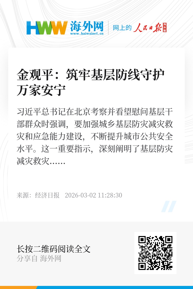 安全是发展的前提,发展是安全的保障。我们要以“时时放心不下”的责任感,补短板、强弱项、固根基,持续加强基层防灾减灾救灾和应急能力建设,织密织牢城乡公共安全防护网,为经济社会高质量发展保驾护航。