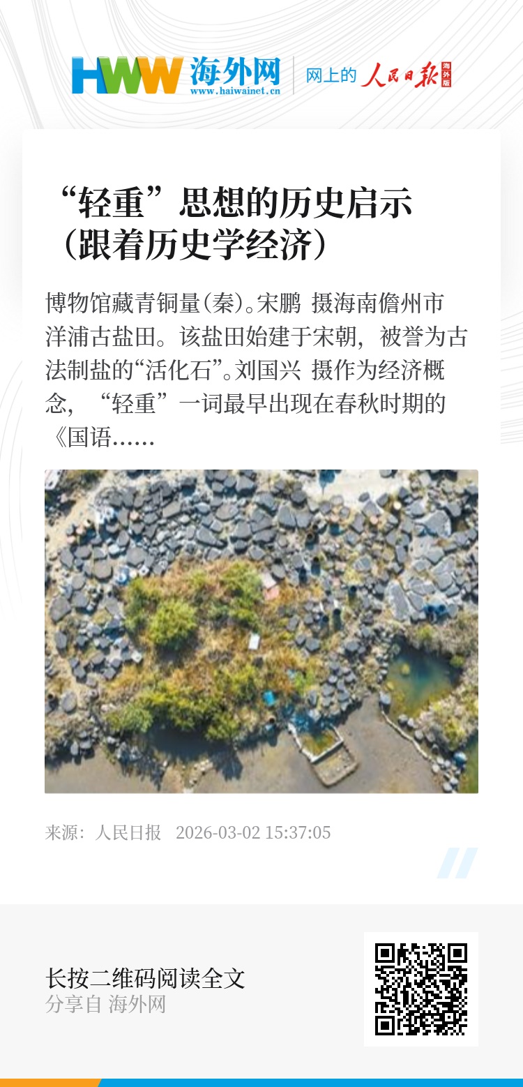 作为经济概念,“轻重”一词最早出现在春秋时期的《国语》中,原指金属铸币的分量轻重或价值高低。随着战国至西汉时期经济发展和全国统一市场展露雏形,在《管子·轻重篇》和《新书》《史记》《盐铁论》中又引申出商品价格贵贱的含义,并形成系统性的“轻重”之学,主张中央政府掌控货币和关键物资,利用商品流通和市场供求规律,发挥出类似现代宏观调控的效果,达到国家经济治理目标。