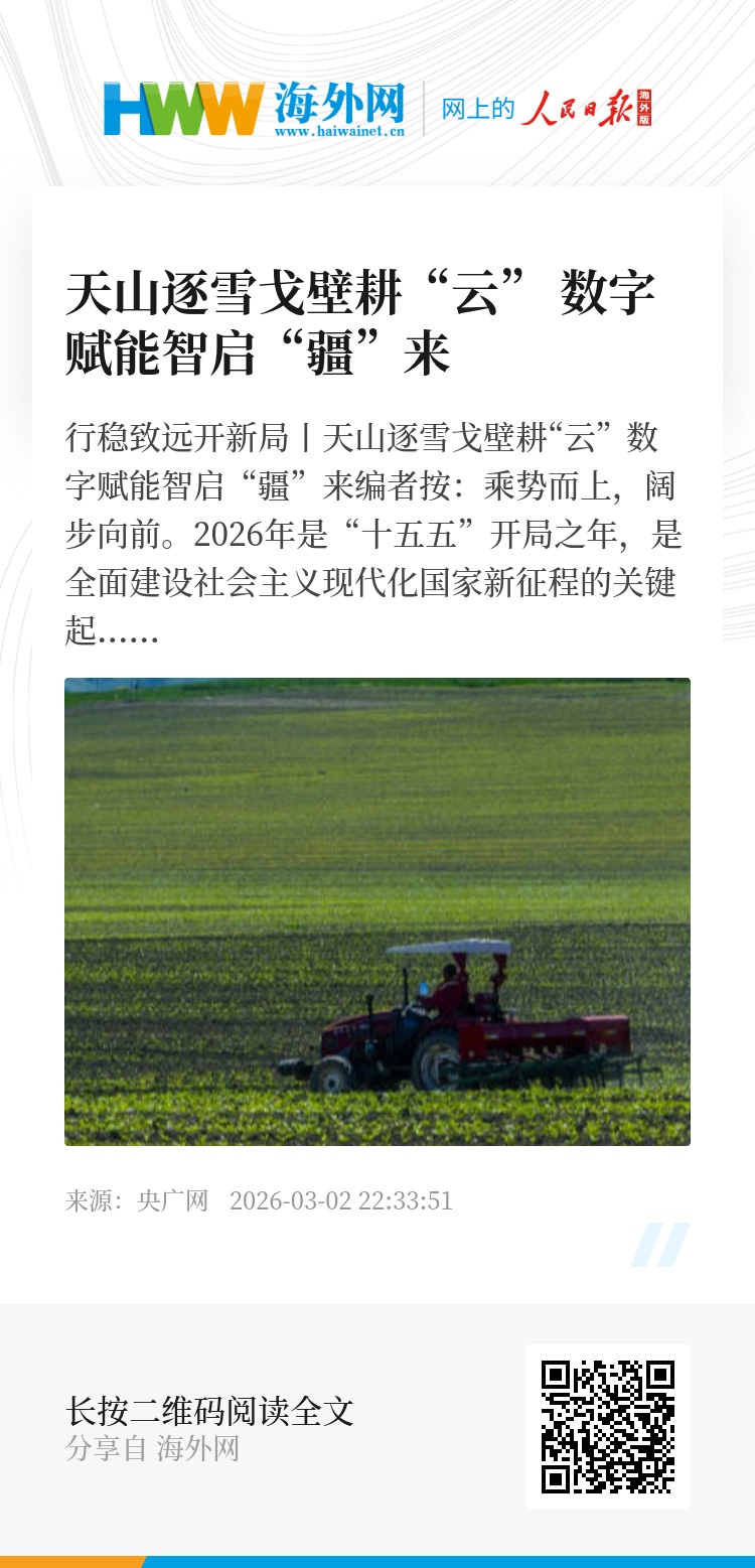 新兴产业如破土春笋,在天山南北拔节生长,农业生产也正迈向智能化、精准化、绿色化新阶段。