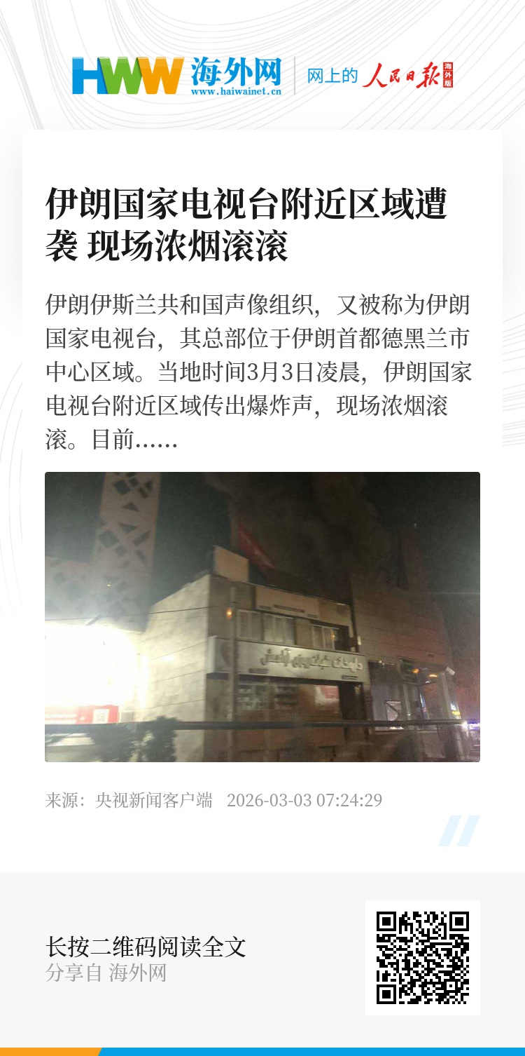 伊朗国家电视台台长3日称,以色列当天对该台建筑的袭击暂未造成人员伤亡。(总台记者 李健南 梁慧 黄元鹏)