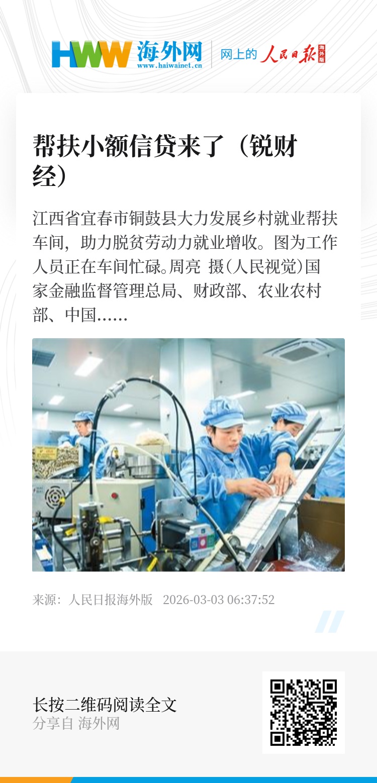 国家金融监管总局有关负责人表示,下一步将会同有关部门切实抓好《通知》贯彻落实工作,充分发挥帮扶小额信贷作用,助力巩固拓展脱贫攻坚成果和乡村全面振兴,为加快建设农业强国贡献力量。(本报记者 徐佩玉)