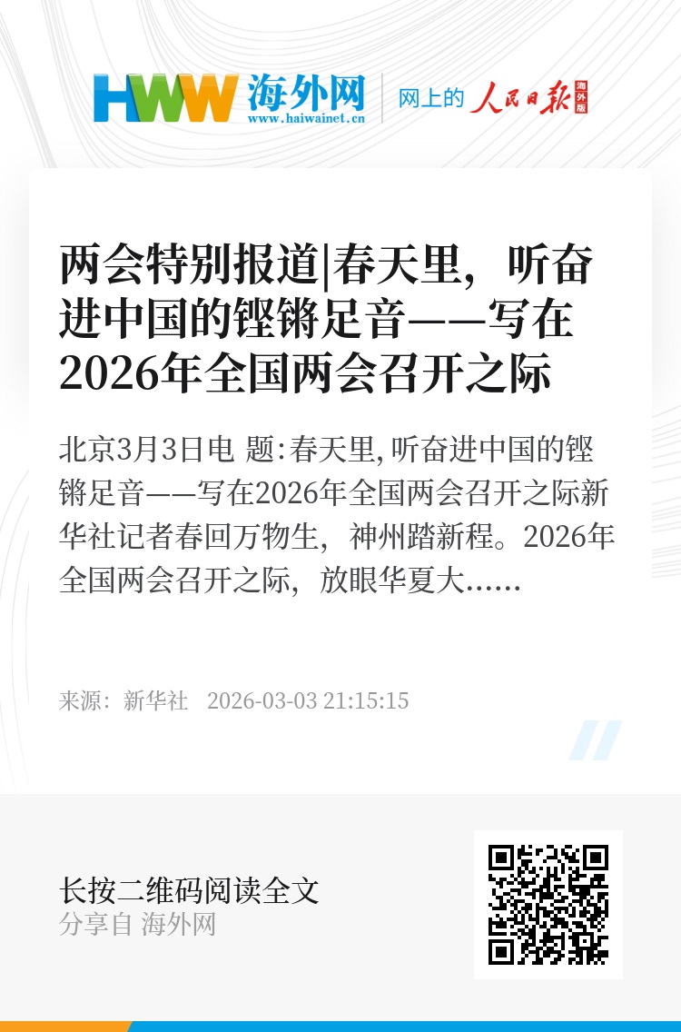 新华社北京3月3日电 题:春天里,听奋进中国的铿锵足音——写在2026年全国两会召开之际