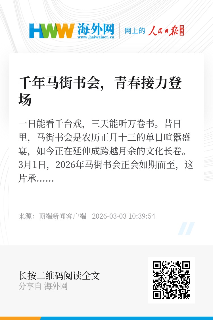 有一种生活叫赶会,有一种乡愁叫听书。700余年弦歌不辍,马街书会以“薪火相传”为底色,让“长会”打破时空局限、焕发动态生机,让古老说唱在新时代的麦田上持续涌动活力、续写新篇。