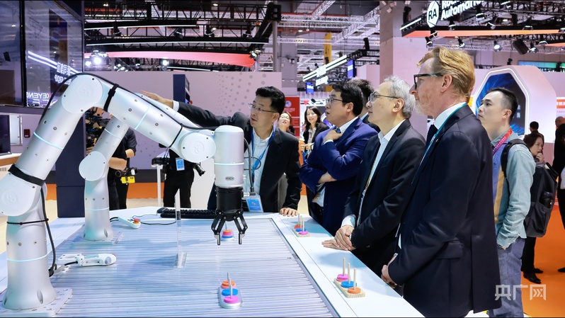 第八届进博会上,科技企业展商在向观众介绍产品(央广网记者 何智康 摄)